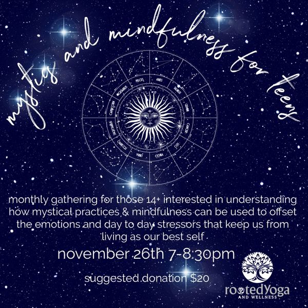 we will meet monthly and talk about meditation, breathwork, oracle cards, journaling, crystals, astrology, sound, mantra and more!